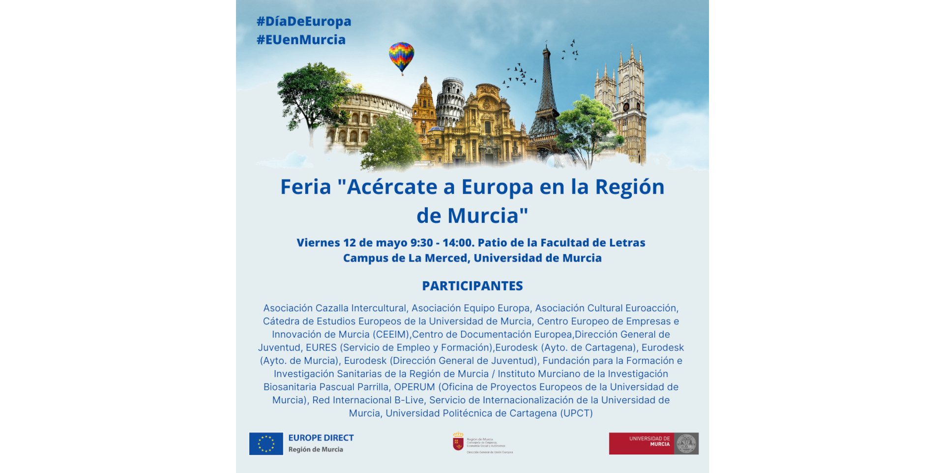 Celebra el Día de Europa: 9 de mayo y “Acércate a Europa en la Región de Murcia” a través de la Feria: 12 de mayo 2023