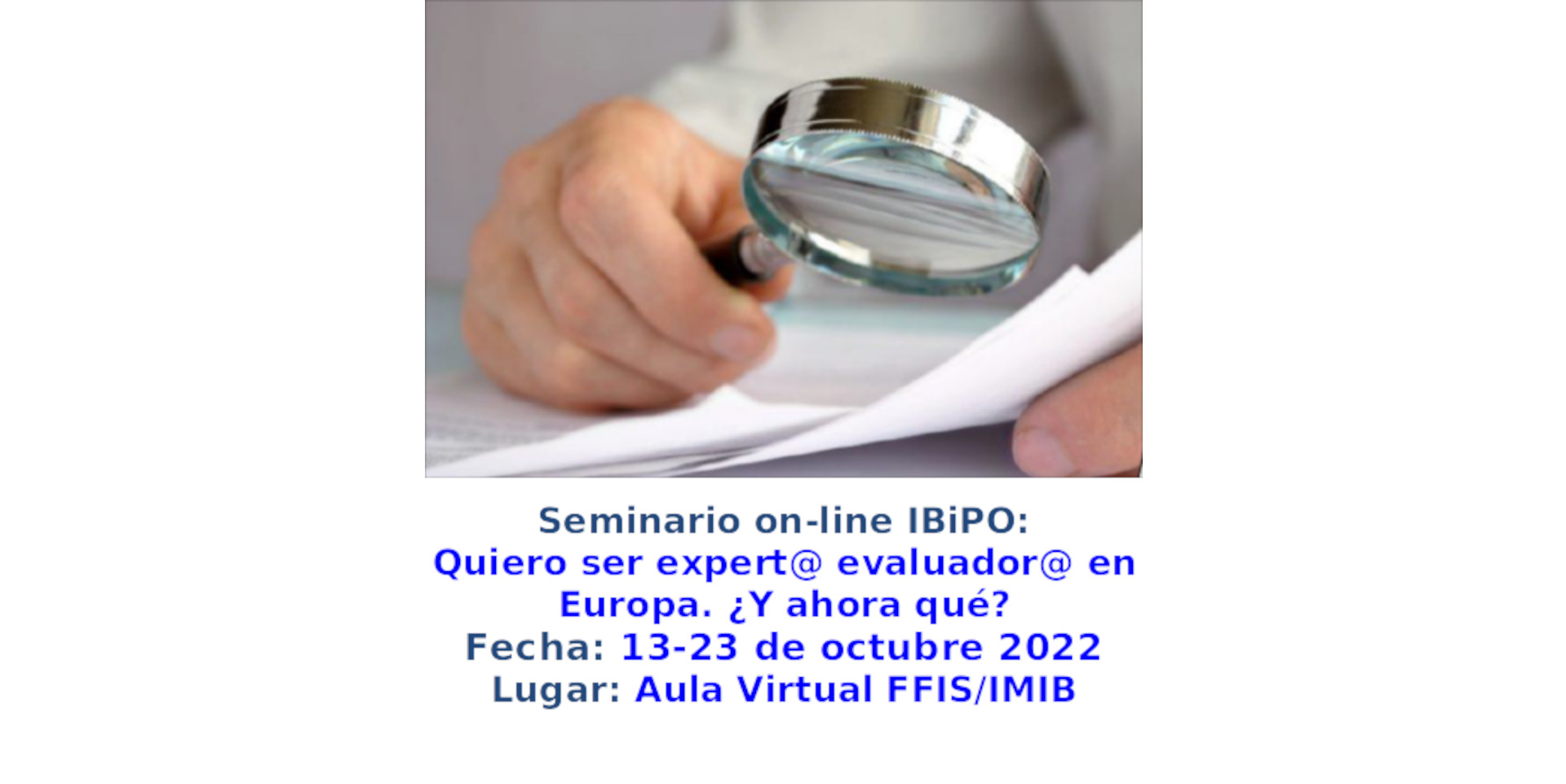 Seminario on-line IBiPO: Quiero ser expert@ evaluador@ en Europa. ¿Y ahora qué? – 13 - 23 de octubre 2022