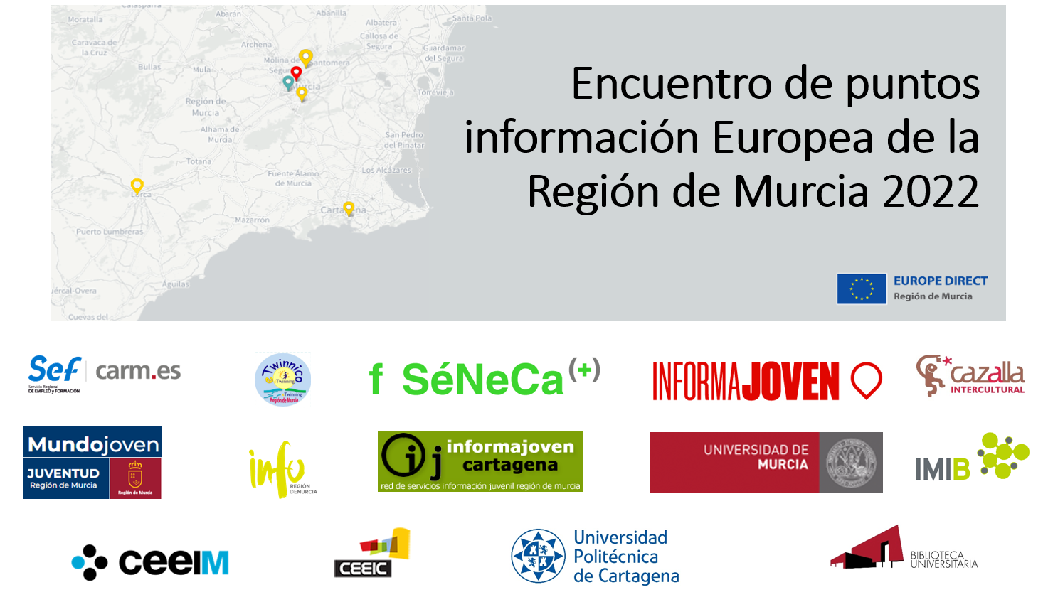 Tras dos años sin haberse podido reunir de modo presencial, debido a la pandemia, el pasado jueves 17 de febrero se celebró el Encuentro de puntos de información europea de la Región de Murcia 2022, organizado por Europe Direct Región de Murcia.