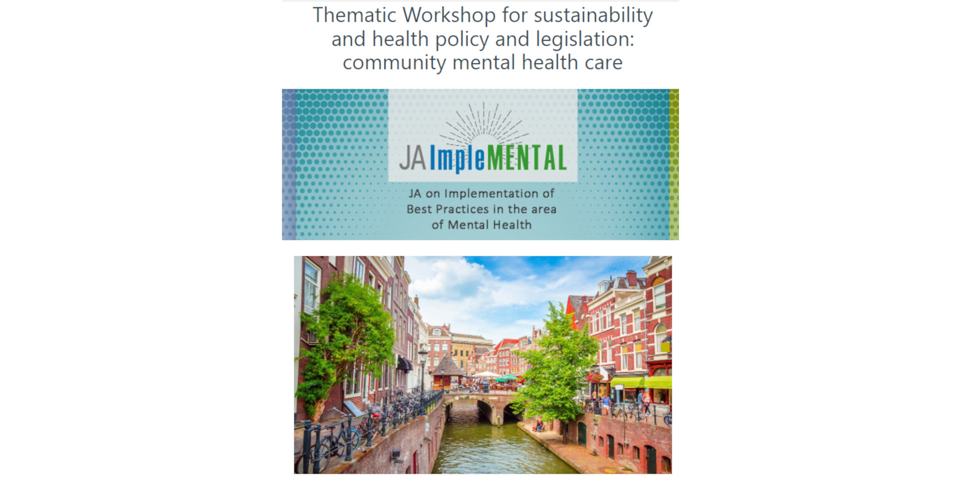 Los días 28 y 29 de febrero de 2024 ,tendrá lugar en Utrecht (Países Bajos) en formato híbrido el taller temático sobre sostenibilidad ,política y legislación sanitarias: atención comunitaria a la salud mental.