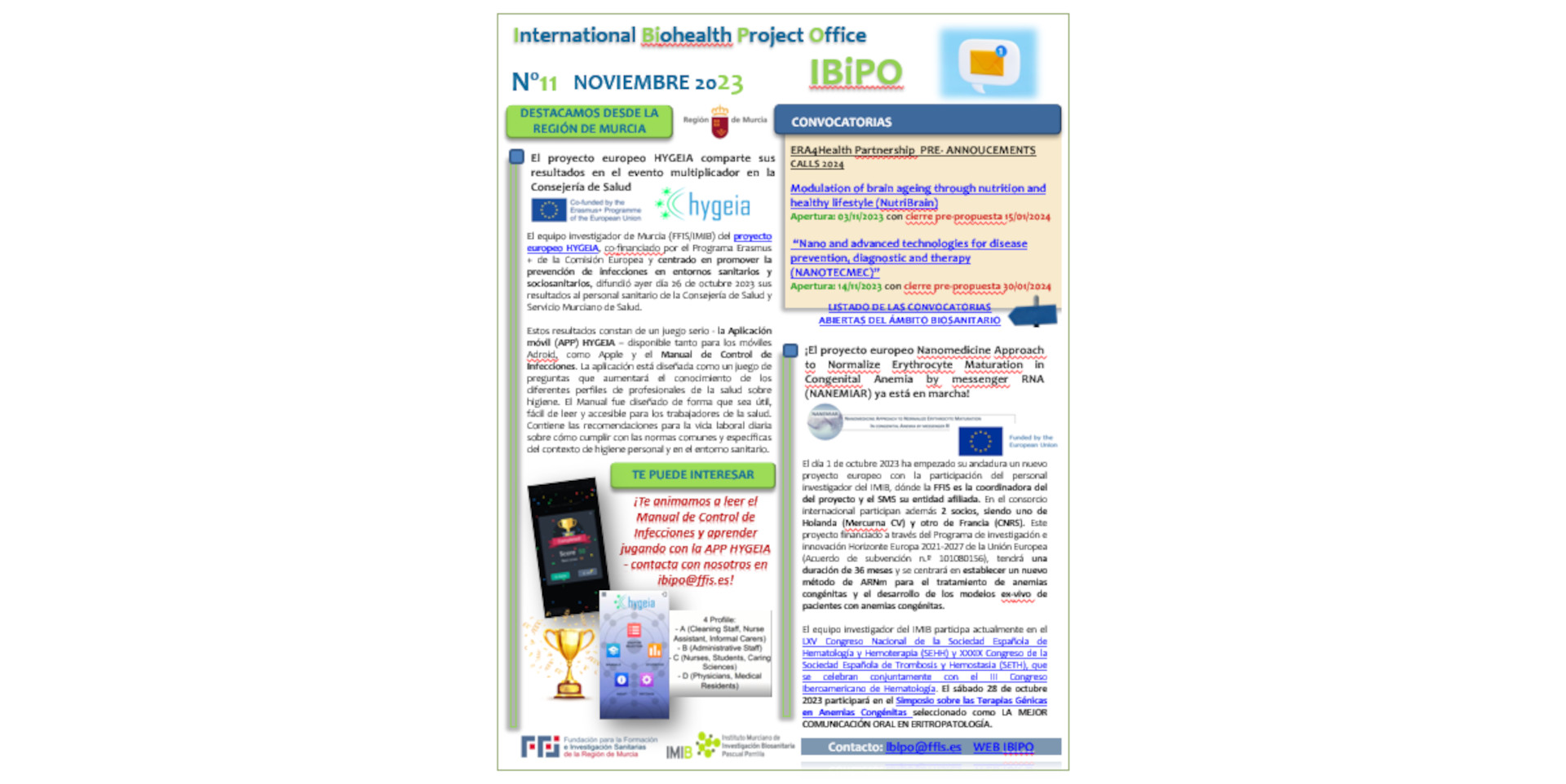 En el boletín de noticias de la IBiPO de este mes destacamos los resultados que ha logrado el proyecto europeo HYGEIA, centrado en promover la prevención de infecciones en entornos sanitarios y sociosanitarios.