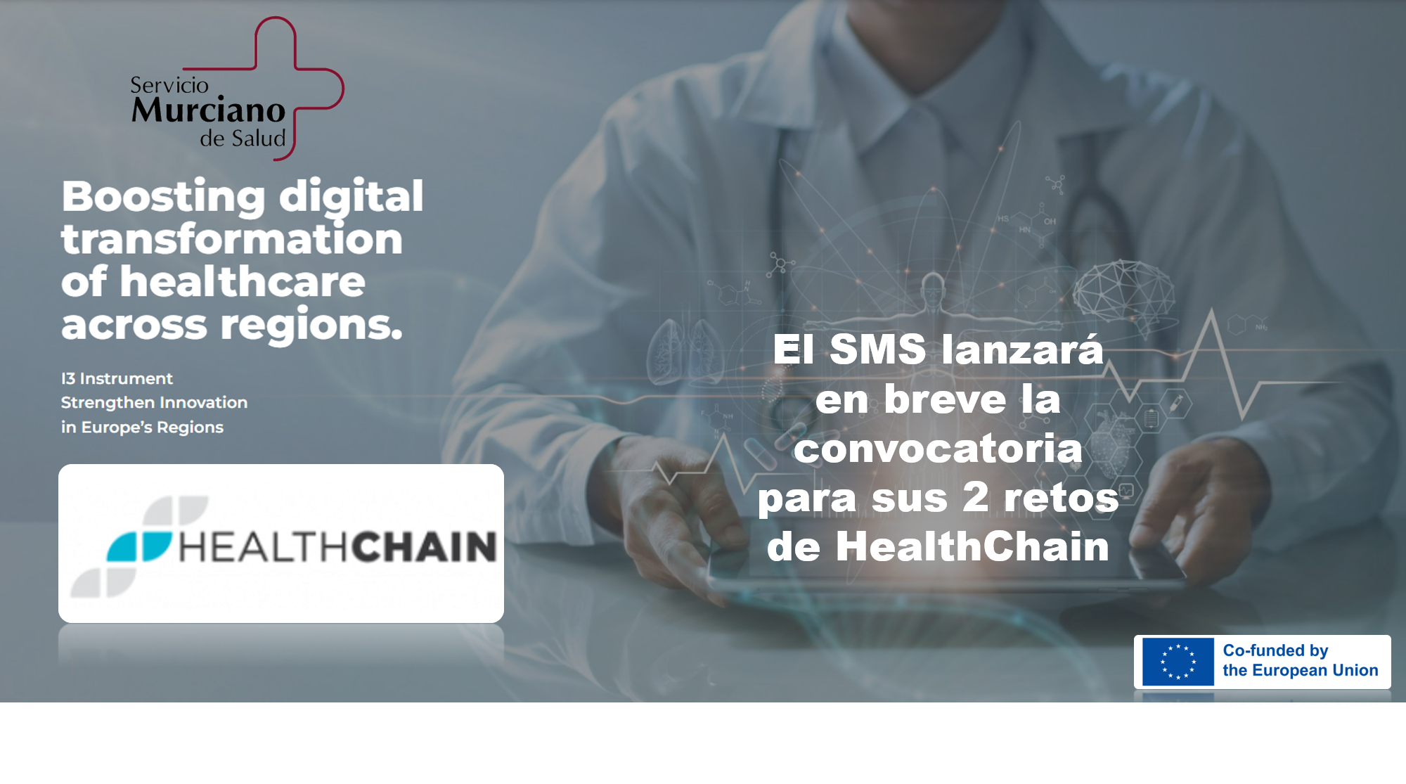 Si trabajas en el Servicio Murciano de Salud, en la Consejería de Salud, o bien perteneces a una asociación de pacientes o eres investigador/a de IMIB o de una universidad de la Región de Murcia (UMU, UPCT, UCAM) y tienes una idea sobre cómo mejorar un problema sanitario con el uso de TIC (Tecnologías de Información y Comunicación) ahora tienes una oportunidad. O mejor dicho 2 oportunidades. Porque el SMS va a lanzar en breve la convocatoria para sus 2 retos de HealthChain, un proyecto europeo en el que tú eres el protagonista.