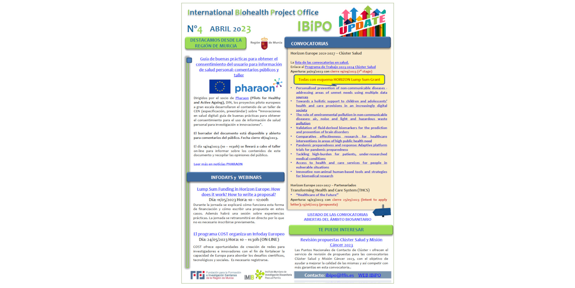Destacamos la apertura de nuevas convocatorias del Horizon Europe Clúster Salud 1 de dos fases, con fecha cierre de la fase 1 el día 19 de septiembre 2023. Para todas estas convocatorias aplica el esquema de financiación de Lump Sum, por lo que hay que modificar la forma de preparar la propuestas a las que estábamos acostumbrados.