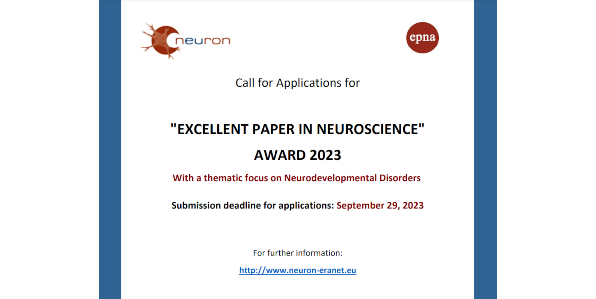 ERA-NET Neuron: Excellent paper in neuroscience award 2023: 29 de septiembre 2023
