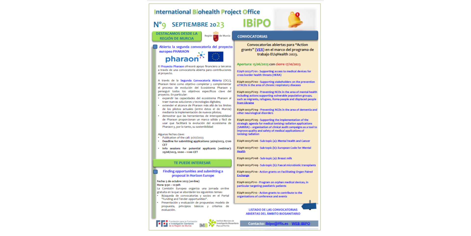 Volvemos con un nuevo boletín de noticias de la IBiPO en el que destacamos la Segunda Convocatoria Abierta del proyecto europeo Pharaon tiene como objetivo completar y complementar el proceso de evolución del Ecosistema Pharaon y perseguir todos los objetivos específicos clave del proyecto. Fechas clave: