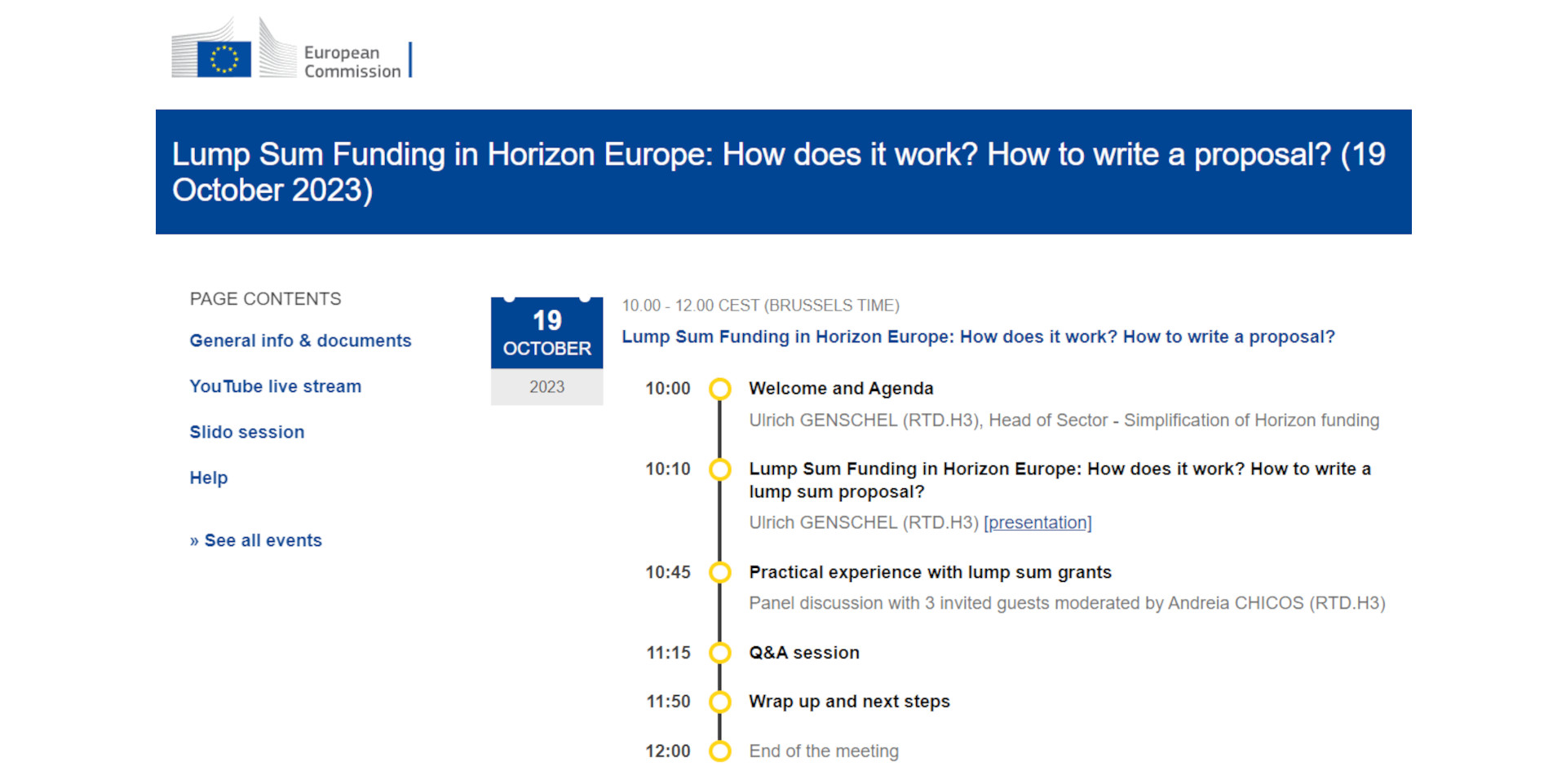 Jornada Lump Sum Funding in Horizon Europe: How does it work? How to write a proposal?: 19 de octubre 2023