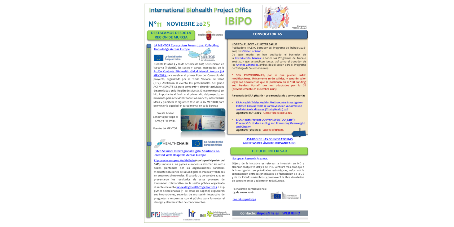 Volvemos con una nueva edición del boletín informativo de la IBiPO en la que destacamos la puesta en marcha de una nueva Acción Conjunta Europea – Hope4Kids que impulsará los cuidados paliativos pediátricos en oncología en Europa.